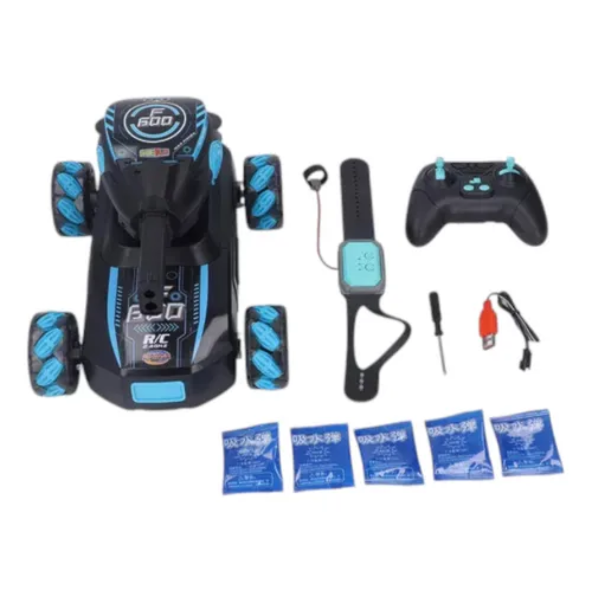 Diviértete al máximo con el Coche de Control por Gestos con Disparo de Bolas de Gel, un tanque inteligente que responde a tus movimientos de mano. 🚀