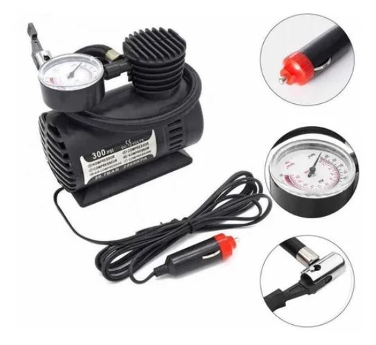 Compresor de Aire Portátil 12V con Medidor de Presión – Ideal para emergencias